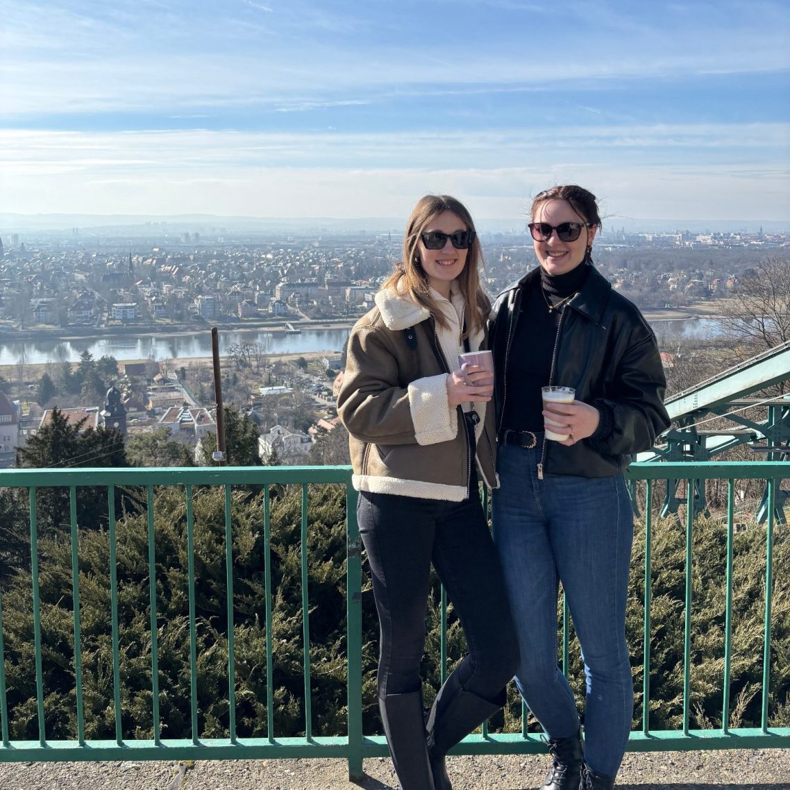 Schwebebahn in Dresden – ein reines Freiluftcafé mit der vielleicht schönsten Aussicht der Stadt: auf die Elbe, das Blaue Wunder und das grüne Umland.